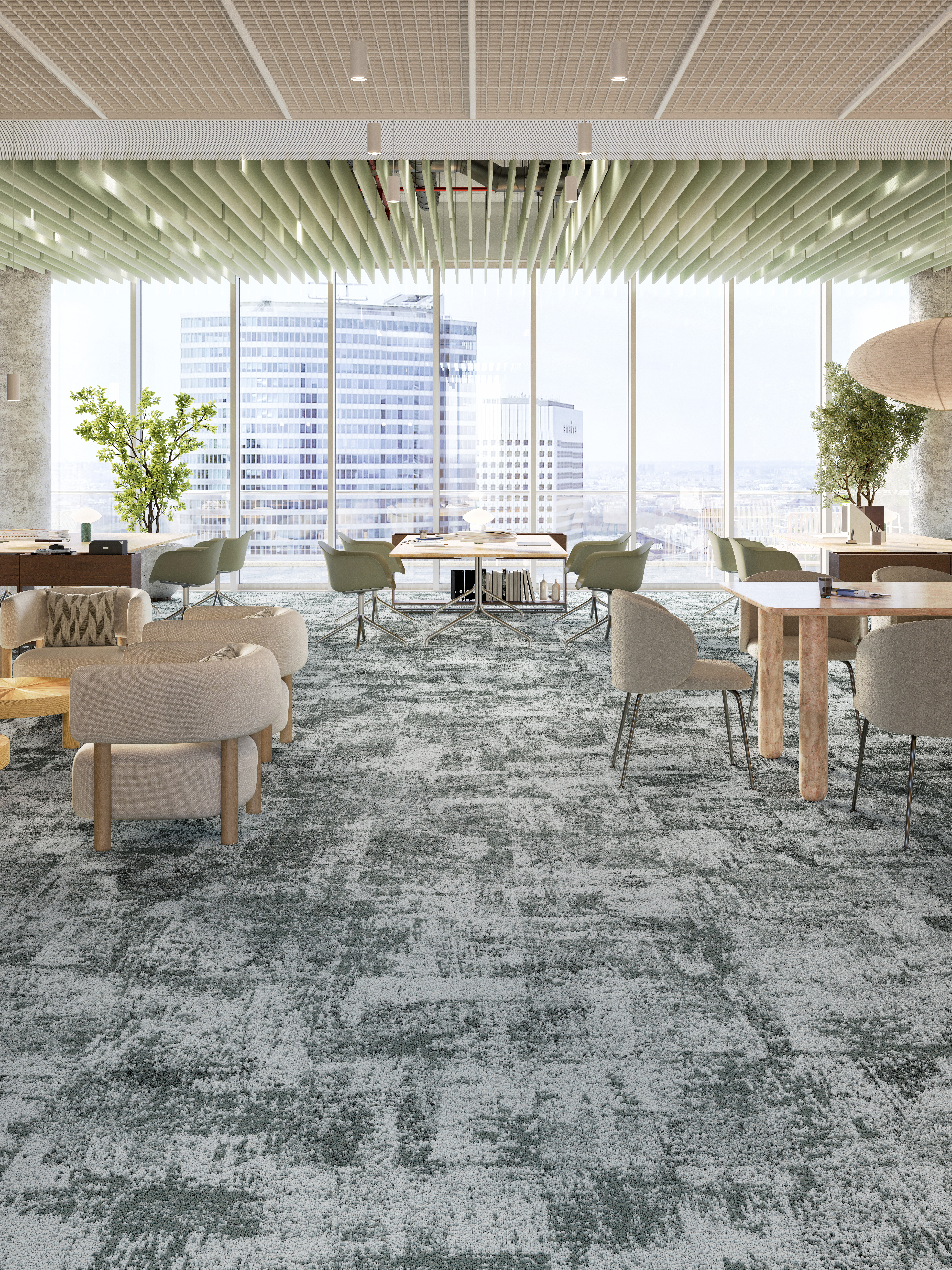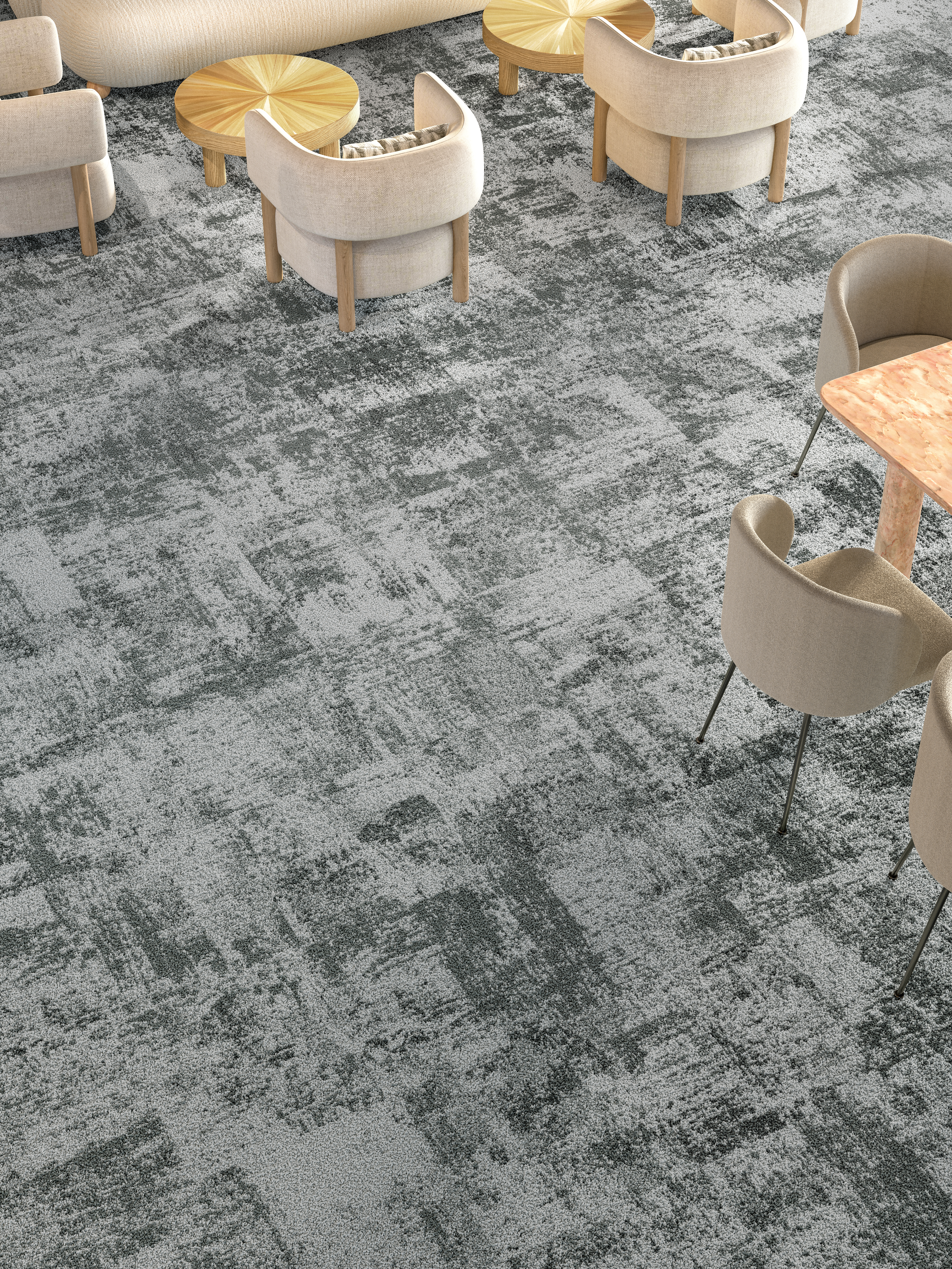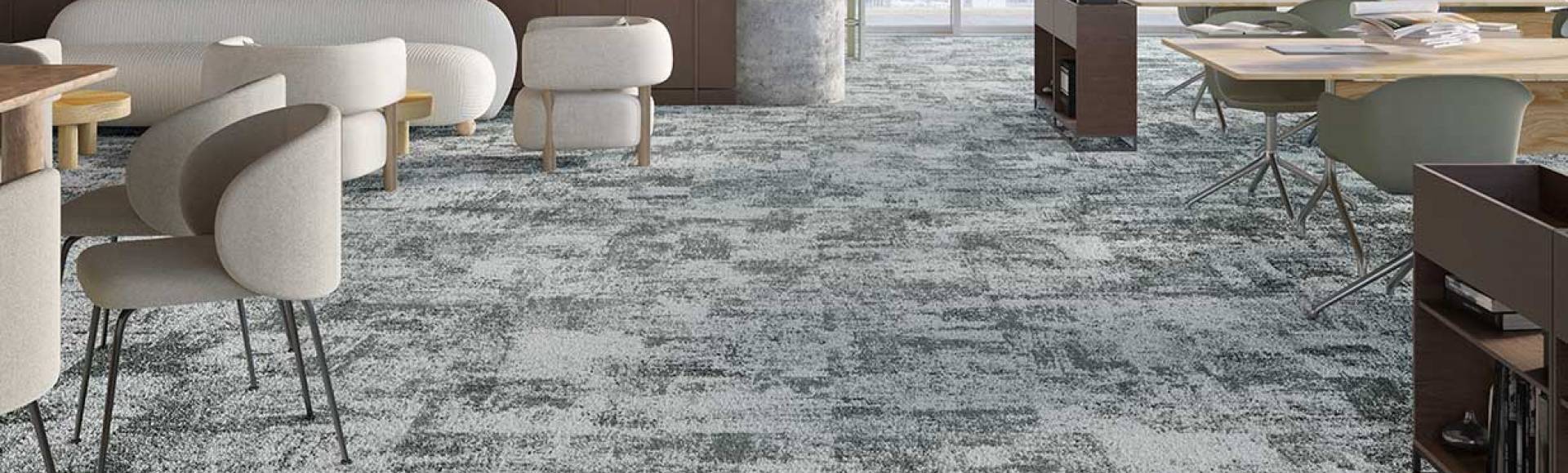 Od 2000 m²: połącz kilka wzorów dywanów we wszystkich trzech formatach — płytki 50 × 50, duże płytki 1 × 1 m i rolki 4 m — dla harmonijnej, spersonalizowanej podłogi