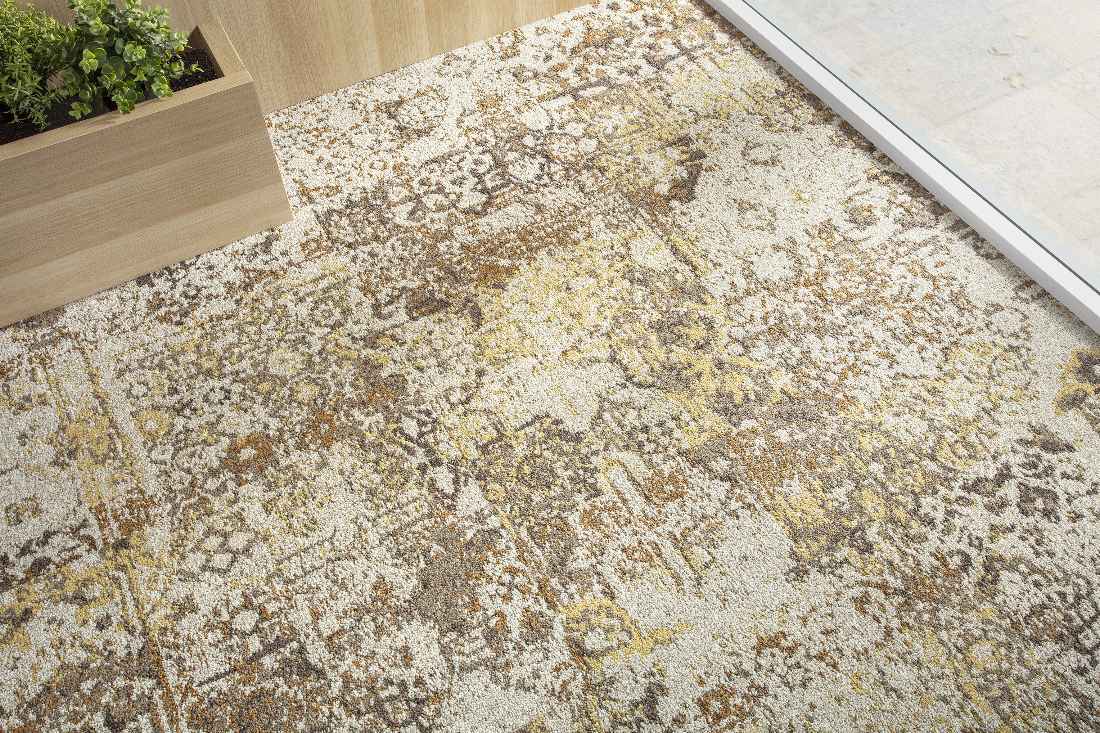 Wykładzina César Dalle, dostępna w formie standardowych płytek w odcieniach beżu, czerpie inspirację z tradycyjnych wzorów orientalnych. Te płytki dywanowe 50x50cm, unowocześnione przez stylistów firmy Balsan poprzez zastosowanie cieniowanego efektu, dodadzą designu i elegancji wszystkim prestiżowym przestrzeniom hotelowym, takim jak apartamenty, przestrzenie lounge i recepcje. César Dalle, płytki dywanowe z kolekcji Carré Couture, zaprojektowane przy użyciu technologii MBrodery, oferują bogactwo struktury o ciężarze runa 1050gr/m², wygodę i wytrzymałość. Idealnie nadają się do miejsc o najbardziej intensywnym ruchu. Tekstylne płytki César Dalle z kolekcji Carré Couture można personalizować przy zamówieniu co najmniej 400m². Odkryj naszą strefę Design Studio i samodzielnie pokoloruj deseń César Dalle, wybierając jeden z 32 dostępnych odcieni w narzędziu Color My MBrodery. Oddzielaj swoje przestrzenie i nadawaj im rytm, dzięki płytkom przejściowym Ralf: W połowie w motywy, w połowie w mikromotywy sprawiające wrażenie gładkiej powierzchni, pozwalają połączyć wzór płytek César Dalle z wzorem Hugo, w harmonijnym przejściu odcieniu. Odważ się i skontaktuj z naszym zespołem designerów, aby stworzyć przejściowe płytki dywanowe na miarę Twoich potrzeb, w formacie 50x50cm lub wielkich płytek 1x1m.